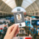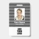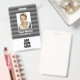 Personnalisez ce badge gris rayé avec nom, photo et logo. Au verso, vous pouvez ajouter des informations utiles comme l'adresse, le site Web, le numéro d'identification et le code à barres.