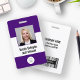 Ce badge présente un arrière - plan simple, moderne, violet et blanc pour un look professionnel. Customisez-le avec votre photo carré, nom, titre de travail, logo, nom de l'entreprise, adresse ou autres informations, et code à barres en option.