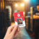 Badge Logo photo rouge et code QR Nom de l'employé