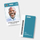 Un badge moderne et simple qui ne détourne pas l'attention des détails importants. Facile à lire de loin. Ajoutez un logo personnalisé et les coordonnées de l'entreprise. Ajoutez le nom de l'employé, sa photo et son titre professionnel. La barre de couleur peut être modifiée pour correspondre aux couleurs officielles de l'entreprise. Au dos, ajoutez plus d'informations telles que l'adresse de retour et le numéro d'identification de l'employé. Parfait pour les logos de forme ronde.