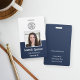 Personnalisez ces badges verticaux avec une photo et un nom d'employé, ainsi que deux lignes de texte personnalisé supplémentaires pour le numéro d'identification d'employé, le rôle ou le titre, l'emplacement ou d'autres données clés. Ajoutez votre logo en haut. Champ de texte personnalisé supplémentaire situé à l'arrière pour les informations de retour ou d'autres détails.