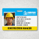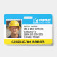 Badge d'identification de chantier avec texte entièrement personnalisable et code QR scannable. Les badges photo personnalisés offrent une sécurité supplémentaire sur un chantier de construction ou comme identification lors d'un salon professionnel. Ce modèle moderne comprend votre logo, nom, détails de l'employé, code-barres et coordonnées. Tout le texte peut être personnalisé pour que vous puissiez inclure les informations souhaitées. Idéal pour un large éventail d'entreprises, y compris la construction résidentielle et commerciale, la gestion, les entrepreneurs généraux, la construction de bâtiments et la construction en conception-réalisation. Couleurs d'impression : bleu, noir, jaune et blanc. Le bleu est une couleur populaire pour les entreprises de construction car il donne un sentiment de fiabilité et de confiance. Explorez la collection pour plus d'idées de produits populaires et de fournitures en vente en ligne, conçues pour l'industrie de la construction.