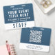 Elevate your event branding with this modern gradient access pass badge, designed for a clean, professional look with built-in QR functionality. Featuring a smooth blue color gradient and bold, easy-to-read typography, this customizable badge ensures quick identification while maintaining a polished, contemporary aesthetic. The layout highlights your event title, team member name, and role (e.g., staff, crew, vendor, VIP, etc.), with a prominent designation for instant recognition. The reverse side includes a large scannable QR code, perfect for digital check-ins, schedules, credentials, or contact sharing -- making this badge as functional as it is stylish. Ideal for large events, conferences, corporate events, trade shows, conventions, festivals, production crews, and VIP, staff, vendor, or media credentials.