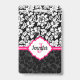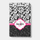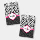 Elégant noir et blanc vintage damassé et des accents roses. monogramme personnalisé