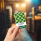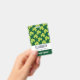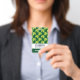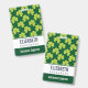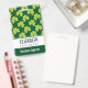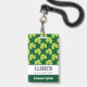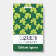 badge de nom personnalisé avec un mignon motif répétitif de trèfle vert olive sur un arrière - plan vert foncé.