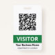 badge de visiteur vertical avec un code qr, VISITOR en lettres blanches propres contre une bande verte, et votre nom d'entreprise et le département ou l'emplacement. Tout le texte est personnalisable. badge de visiteur de code QR vert et blanc pour votre entreprise.