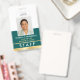 Créez une apparence professionnelle avec ce badge d'identification personnel personnalisé. Un modèle simple et élégant avec votre photo d'identité, nom, titre d'emploi, numéro d'employé, logo de l'entreprise et code QR scannable. Tout le texte peut être customisé ou supprimé pour répondre à vos besoins. Cette conception élégante conviendra à de nombreux lieux de travail et professions différents, y compris les vendeurs au détail, les employés de restaurant et de restauration, le personnel de bureau, les petites entreprises, les étiquettes de nom de conférence et plus encore! Couleurs imprimées : vert turquoise et blanc avec dégradé or.