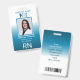 Combinaison simple, moderne, sophistiquée bleu et blanc foncé : badge d'identification vertical pour l'infirmière, sur mesure : photo, nom de l'infirmière, nom de l'hôpital, logo, titre de l'emploi, pièce d'identité, désignation, code à barres et toutes autres informations. Il est facile de personnaliser et de customiser tous les éléments graphiques et le texte. Il y a l'adresse de retour personnalisée à l'arrière. Choix parfait pour : Infirmière autorisée RN, Infirmière autorisée pratique LPN, Infirmière praticienne NP, Infirmière Médicale chirurgicale, Infirmière de salle d'urgence et bien d'autres.