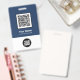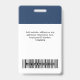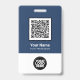 Personnalisez facilement ce badge personnalisé de nom d'employé avec ou sans photo, code Qr, code de barre d'analyse et logo d'entreprise. Un design d'entreprise simple en bleu marine et blanc entièrement personnalisable en tailles avant et arrière, sans-serif polices de base et moderne et un look professionnel et clair. Disponible avec cordon, clip métallique ou avec rétractable. Pas de commande minimum.