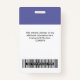 Personnalisez facilement ce badge personnalisé de nom d'employé avec photo, code de la barre d'analyse et logo de l'entreprise en couleur violet, la couleur de 2022. Un design d'entreprise simple en bleu marine et blanc entièrement personnalisable en tailles avant et arrière, sans-serif polices de base et moderne et un look professionnel et clair. Disponible avec cordon, clip métallique ou avec rétractable. Pas de commande minimum.
