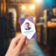 Cartes d'identification d'employé personnalisées. Customisez-le avec votre propre texte, photo de profil et logo de l'entreprise.