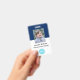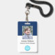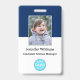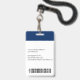 Créez votre propre plastique PVC personnalisé, durable, ne s'estompera pas ou déchirera, cool moderne tendance bleu marine et blanc, nom badge photo d'identité, avec choix de pièces jointes - lanière, clip métallique, rétractable, ou aucun. Pour personnaliser, entrez le nom de l'employé / du personnel / de l'exécutif, sa désignation, ainsi que toute information supplémentaire comme la pièce d'identité de l'employé, l'émission et la date d'expiration de l'insigne, en cas de perte retour à & l'adresse, etc. Ajoutez ensuite la photo de l'employé / du personnel / de l'exécutif, ajoutez le logo de l'entreprise / de l'entreprise, et ajoutez le code barre. Pendant que vous tapez/concevez, vous pourrez voir un aperçu de votre badge, tout au long du processus. Idéal pour les petites entreprises, les entreprises, l'école, le restaurant, le bureau, le concert, la vente au détail, l'hôpital, la clinique, et pour les employés, le personnel, le médecin, l'enseignant, l'étudiant.