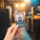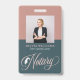 Badge d'identification de l'agent de signature de prêt notaire moderne. Le design comprend une photo, un script de typographie "Notaire" et un nom sur l'avant, les coordonnées et le code qr sur l'arrière.