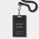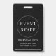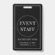 Un simple badge d'identification de carte d'identité du personnel de l'événement blanc sur noir.