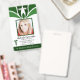 badge d'identification médicale verte personnalisé avec un design ondulé abstrait et moderne au-dessus de la photo de l'employé de l'hôpital ou de la clinique. Ajoutez votre propre photo et vos informations personnalisées, y compris le titre du poste, le nom du département, le numéro d'identification, la date d'émission ou d'expiration et le nom et le logo de l'établissement médical. Peut être customisé avec votre médecin ou votre code-barres personnel sur le dos pour plus de sécurité et d'accès.