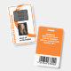Customisez ce badge d'employé tourbillon orange avec le logo de votre entreprise, le nom de votre employé, la photo, le titre, le code à barres et toute information supplémentaire au dos.