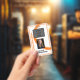 Badge Orange Swirl Nom de l'employé, Photo, Titre, Code-