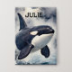 A magnificent orca breaches the waves on a stormy day. Customise with the name of your choice.
