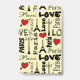Paris design de texte pour la Saint-Valentin aux formes coeur rouge, Tour Eiffel et lampes de rue décoration arrière - plan jaune