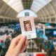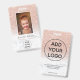 parties scintillant d'or rose moderne logo en marbre blanc laissez passer photo employé, ajoutez votre photo, nom, titre, logo de la société, couleur rose pastel est modifiable