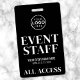 Votre logo Black White All Access Event Badge du personnel. Idéal pour les défilés de mode, les concerts, les grands événements spéciaux comme les conférences, les concerts, les conférences, et peut même travailler pour une fête d'anniversaire ou toute autre fête où vous voulez que vos invités se sentent spéciaux. Un simple, moderne, mais élégant, regardez avec un endroit pour ajouter votre entreprise ou même logo haut de gamme. En bas se trouve une police serif audacieuse mélangée à de la typographie simple, avec Event Staff, le nom de l'événement, la date et 'All Access Pass'. Vous pouvez modifier toutes les informations textuelles et les couleurs de ce badge.