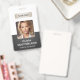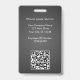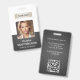 Un badge d'identité d'entreprise moderne et élégant conçu dans une palette de couleurs grises. Facilement personnalisable avec une photo d'employé, son nom, son titre, le logo de l'entreprise, son code QR et d'autres détails commerciaux. La mise en page comporte une typographie propre pour une apparence professionnelle et claire, assurant une identification facile. Ce badge d'identification est disponible avec des options pour un cordon, un clip métallique ou un support rétractable. Aucune commande minimale requise.