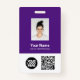 Badge Photo d'employé pourpre, code Qr et barre, logo, n