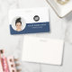 Personnalisez facilement ce badge de nom d'employé minimaliste horizontal personnalisé avec photo, code Qr ou code de barre d'analyse et logo d'entreprise. Un design d'entreprise simple avec photo ronde, en bleu marine et blanc entièrement personnalisable en tailles avant et arrière, sans-serif polices de base et moderne et un look professionnel et clair. Disponible avec cordon, clip métallique ou avec rétractable. Pas de commande minimum.