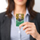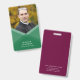 Un insigne moderne de photo comportant un vert a posé le dessin géométrique sur l'avant où vous pouvez également ajouter votre photo et un arrière de couleur pourpre. Perfectionnez comme insigne de bureau pour que votre personnel et également grande manière se présente aux réunions ou aux événements.