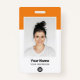 Personnalisez facilement ce badge personnalisé de nom d'employé avec photo, code de barre d'analyse et logo d'entreprise. Un design d'affaires simple en boho chaud tangerine orange et blanc entièrement personnalisable en tailles avant et arrière, sans-serif polices de base et moderne et un look professionnel et clair. Disponible avec cordon, clip métallique ou avec rétractable. Pas de commande minimum.