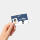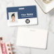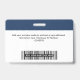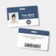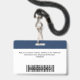 Personnalisez facilement ce badge personnalisé de nom d'employé avec photo, code de la barre d'analyse et logo de l'entreprise, avec cordon inclus. Un design d'entreprise simple en bleu marine et blanc entièrement personnalisable en tailles avant et arrière, sans-serif polices de base et moderne et un look professionnel et clair. Disponible avec ou sans nacelle, clip métallique ou avec rétractable. Pas de commande minimum.