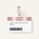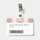 Personnalisez facilement ce badge personnalisé de nom d'employé avec photo, code de la barre d'analyse et logo de l'entreprise, avec clip métallique inclus. Un design féminin tendance aligné à gauche dans la parties scintillant en faux feuille d'or rose mignon goutte entièrement personnalisable en tailles avant et arrière, sans-serif polices de base et moderne et un look professionnel et clair. Disponible avec ou sans nacelle, clip métallique ou avec rétractable. Pas de commande minimum.