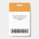 Personnalisez facilement cette tangerine orange Personnalisé Nom de l'employé Badge avec Photo, Scan Bar Code et logo de l'entreprise. Un design d'entreprise simple dans les couleurs standard tangerines orange et blanches à la mode entièrement personnalisable dans les tailles avant et arrière, sans-serif polices de base et moderne et un look professionnel et clair. Disponible avec cordon, clip métallique ou avec rétractable. Pas de commande minimum.