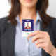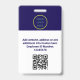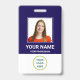 Personnalisez ce badge personnalisé de nom d'employé avec une photo, scanner le code QR (toujours lisible, ça marche !) et le logo de l'entreprise. Un design d'entreprise simple en bleu marine et blanc, entièrement personnalisable en tailles avant et arrière, sans-serif polices de base et moderne, et un look professionnel et clair. Disponible avec une nacelle, un clip métallique ou rétractable. Il n'y a pas d'ordre minimum.