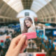 Badge Photo superposée rose et sarcelle