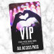 Concert Billet Tous Accès Special Événement Badge VIP. Idéal pour des concerts, des événements spéciaux comme des conférences ou des orateurs, et même des fêtes d'anniversaire. Ce design présente une ambiance ludique sur le thème du concert avec quelqu'un tenant ses mains dans une silhouette en forme de coeur. L'arrière - plan est désormais d'une esthétique élégante, rose et noir, avec des lumières roses vibrantes et de subtiles touches de bleu éparpillées dans le sol pour une lueur énergique. En bas, le texte en gras affiche "VIP", le nom de l'événement, la date et "All Access Pass". Toutes les informations de texte et les couleurs de police sont entièrement personnalisables. Vous pouvez même remplacer la photo, bien qu'elle puisse ne pas s'estomper en noir au bas de l'image de manière transparente.