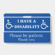 Badge Bleu. J'ai un handicap. Sois breveté, s'il te plaît. Avertissez les autres de handicaps invisibles. Donne ça à papa, frère, grand-père, ami, enfant, plus. Ils peuvent se porter en public pour faire savoir à tout le monde qu'ils peuvent avoir besoin d'un peu plus de temps que les autres. Personnalisez, effacez le dos et ajoutez vos propres mots. Peut ajouter un nom, un numéro de téléphone d'urgence ou une alerte pour maladie ou état de santé. Choisissez Modifier. Un cadeau réfléchi.