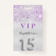 Un badge moderne, élégant et glamour pour Quinceañera, 15e anniversaire de naissance d'une fille. Un arrière - plan chic faux argent à la fausse parties scintillant couleur lavande. Le nom est écrit avec un script de style moderne écrit à la main. Avec le texte : VIP Numéro 15 est écrit avec une police de style ballon, script. Retour : date de la fête et adresse du lieu.
