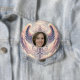 Ajoutez une photo à ce bouton mémorial réconfortant avec des ailes d'anges et un nuage aux couleurs pastel.