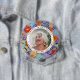Celebrate a loved family member or friend with this round photograph button featuring a whimsical and bright painterly wild flower pattern on pastel lavender purple with easily edited text to memorialize a very special person or moment in life.