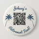 Élevez votre fête de retraite avec ce bouton de code QR personnalisé! Doté d'un design avec deux palmiers bleus et le texte "Caisse de retraite de Johnny !", ce bouton permet de scanner le code QR et de contribuer au fonds spécial du retraité. Faites une contribution significative pour honorer le voyage de retraite de Johnny!