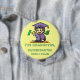 Sur un dos jaune, un petit enfant avec son casquette et sa robe, et un diplôme, il est prêt à aller à la maternelle. J'adore ce bouton et ils le porteront si fier.