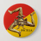 Bouton Sicilia (Sicile) - Couleurs du Drapeau Sicilien avec Symbole Trinacria d'or et le mot "Sicilia".