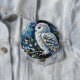 Badge Rond 10 Cm White Owl On Branch in Moonlight Personalized