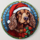Badge Rond 15,2 Cm Cocker Spaniel Vitrail Noël
