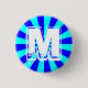 Un monogramme blanc et grungy au-dessus d'un aqua funky et un motif de starburst bleu.