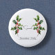 Fleur de mois de naissance Décembre Holly bouton représentant une illustration d'une fleur sainte. Sous la fleur, le nom est écrit dans une police de script élégante. Sous le nom, il indique "Décembre - Holly" indiquant que le mois de naissance du propriétaire est Décembre et sa fleur de naissance est le gladiolus. Il s'agit d'un bouton personnalisé, customisé comme un cadeau réfléchi pour quelqu'un né en décembre.