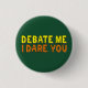 Débats-moi, je t'ose. Une équipe de discussion et de discours confiante cite une personne d'opinion qui peut se défendre à travers n'importe quelle discussion ou compétition. Cool texte jaune et orange vif sur ce bouton humour de l'orateur pour un orateur public. Ayez la confiance que vous gagnerez n'importe quel argument.