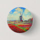 Bouton représentant la peinture de la fleur et du moulin de Claude Monet. De beaux champs colorés de tulipes rouges, roses et jaunes à côté d'un moulin et d'une maison en Hollande. Un grand cadeau Monet pour les amateurs d'impressionnisme et d'art français.