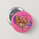 BADGE ROND 5 CM かわいいピンクの鮮やかなお花模様レトロハート♡